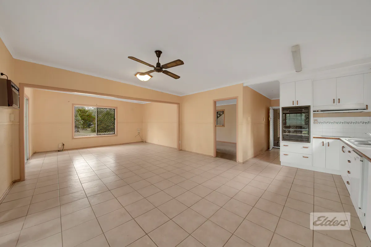 The home features a large open plan living and dining area with tiled flooring, ceiling fans and excellent natural light, creating a comfortable central hub for family living. Glass sliding doors seamlessly connect the interior to the outdoors, making it easy to enjoy the fresh country air and tranquil surrounds.
