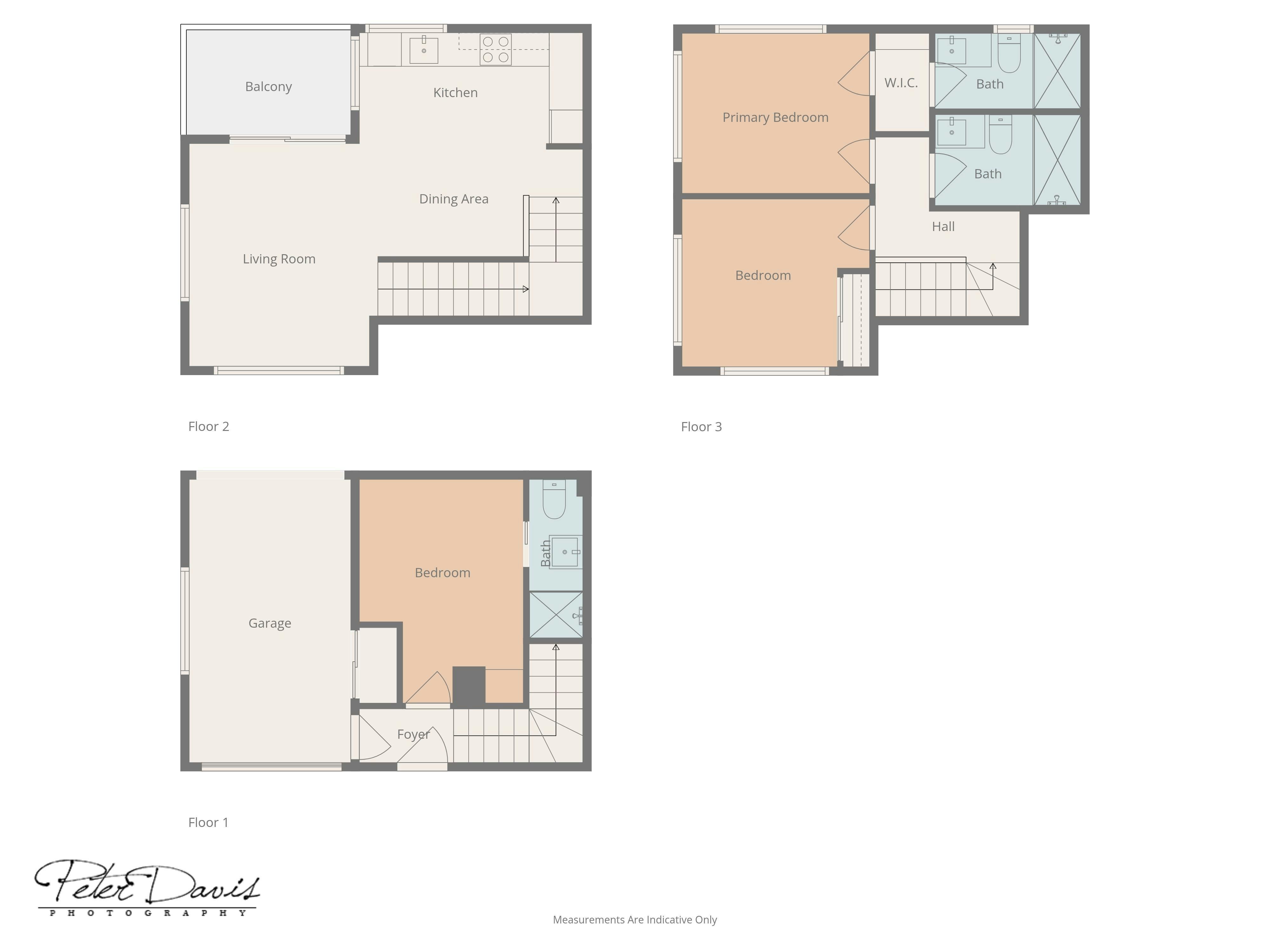 • One bedroom and bathroom located on the lower level the other two on the top level.