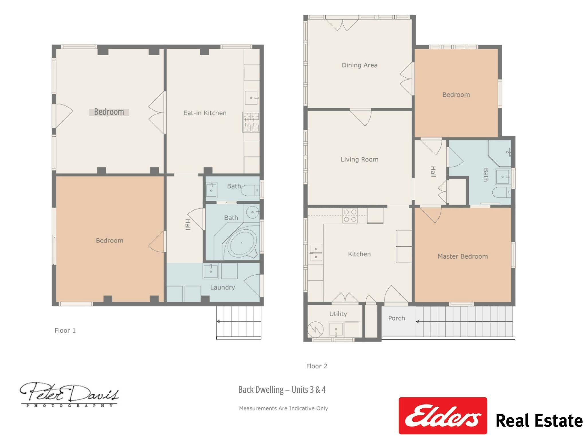 • Unit 4 (Downstairs) – 2 bedrooms, 1 bathroom, kitchen and laundry.